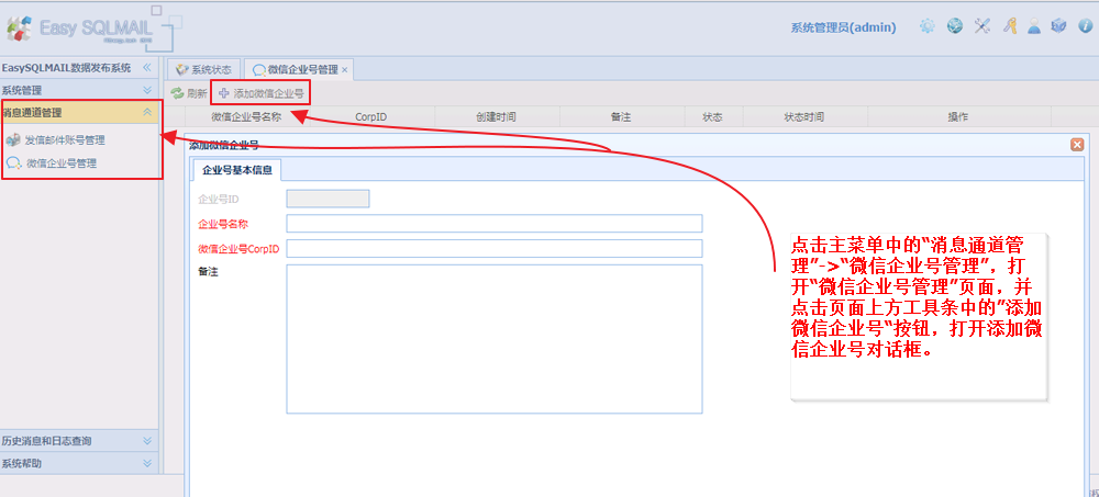 EasySQLMAIL系统操作手册->微信企业号配置
