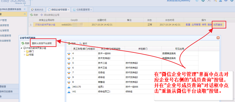 重新从微信平台读取企业号成员信息