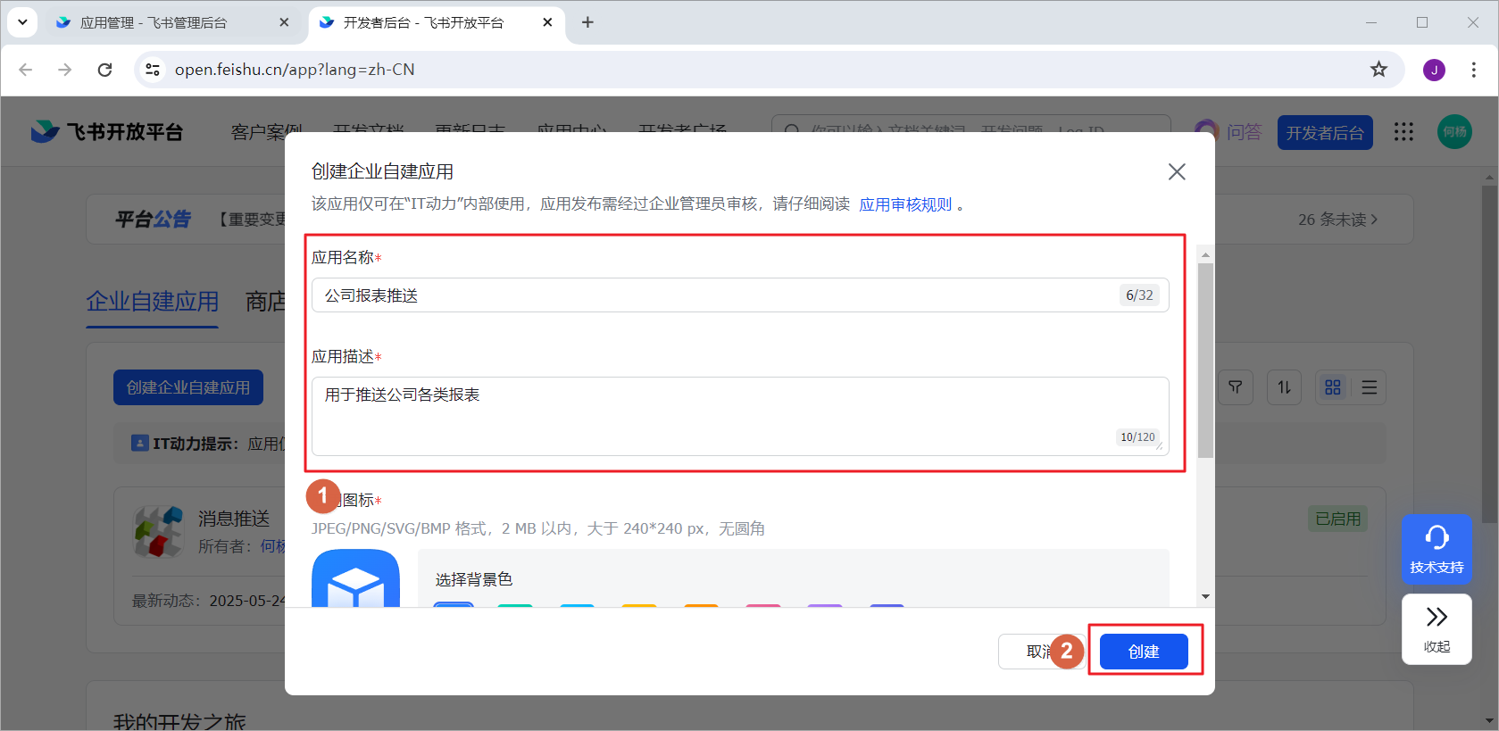 Step3: 输入"应用名称"和"应用描述",点击"创建"按钮。