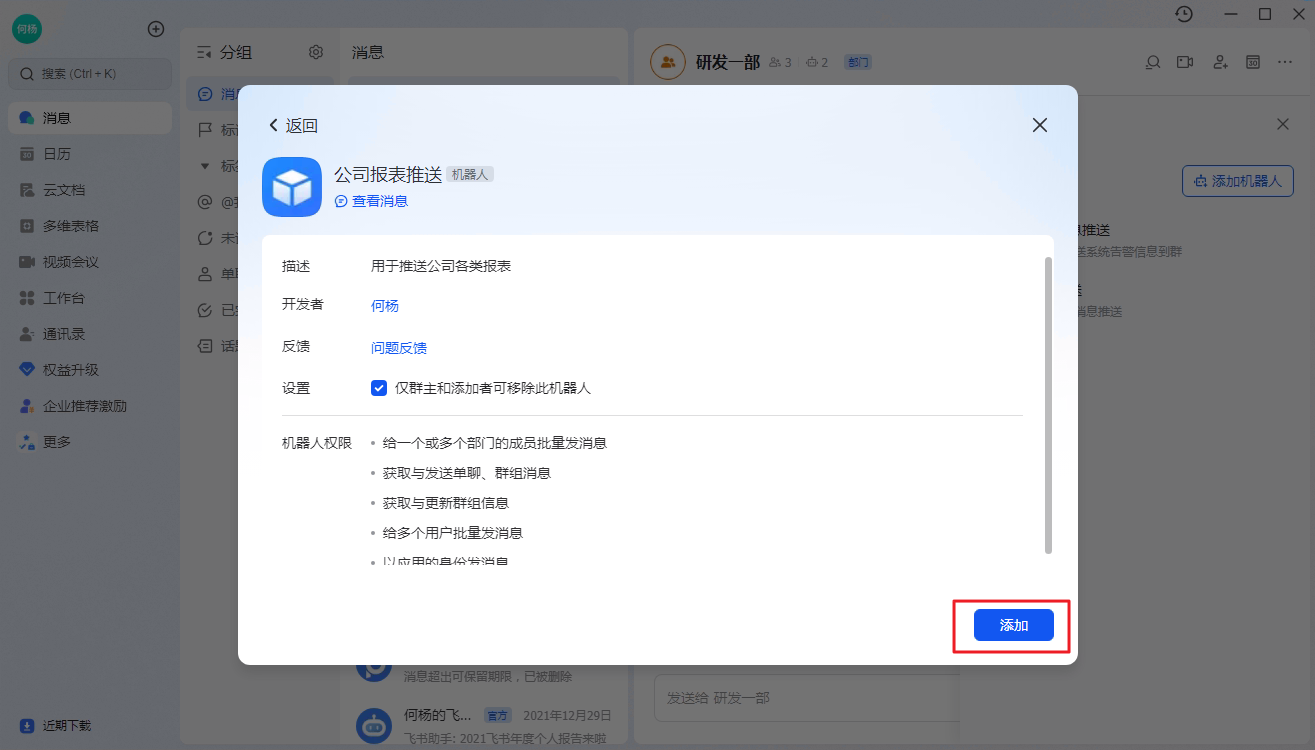 应用需要有此权限才能读取群的信息,以便管理员在设计任务时选择任务的收件人。