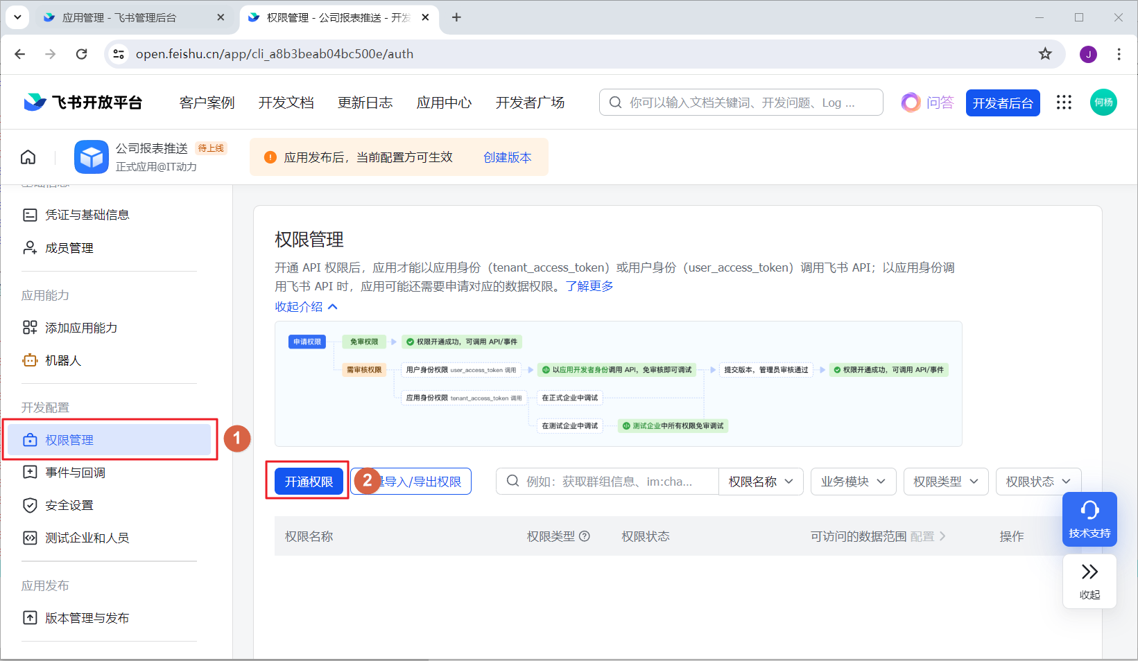 Step6: 逐一选择好权限后,点击"确认开通权限"按钮。