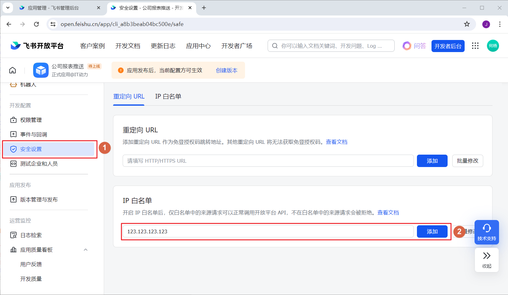 飞书应用创建好后,需要把应用的信息添加到EasySQLMAIL中,才能推送消息。