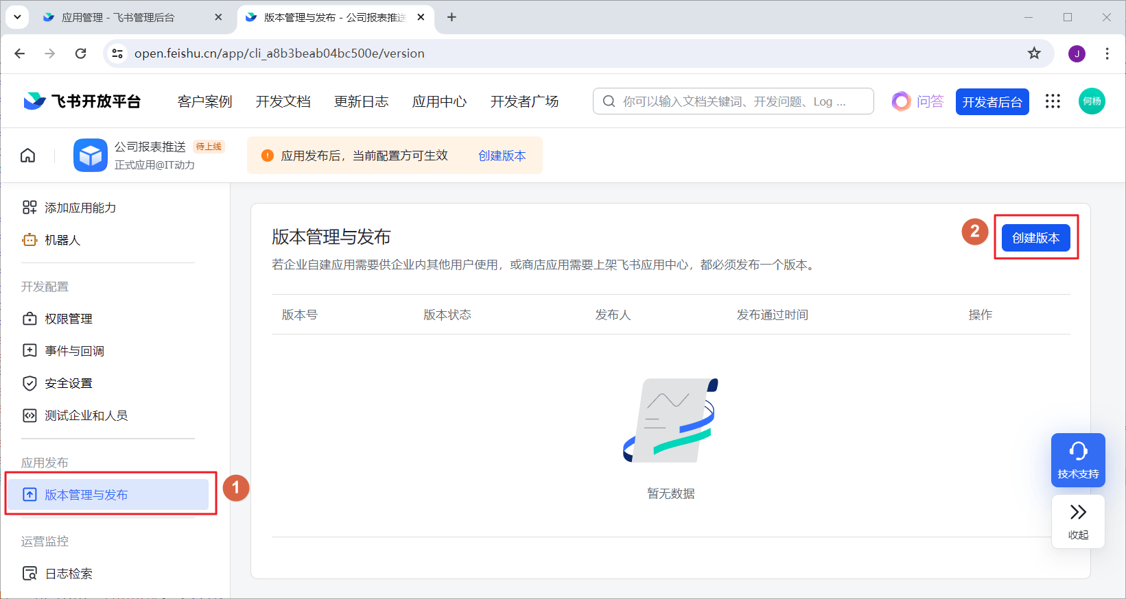 Step8: 在"版本管理与发布"中点击"创建版本"。