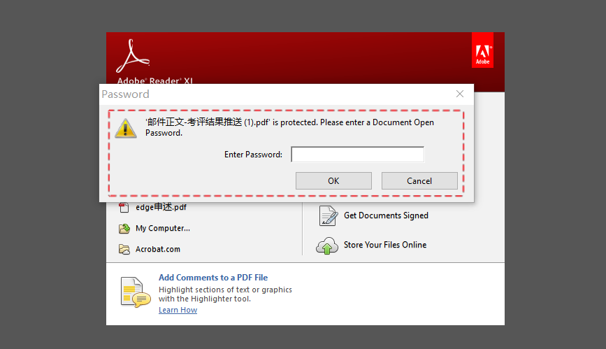 收件人收到PDF文件后,需要输入密码才能打开此文件。