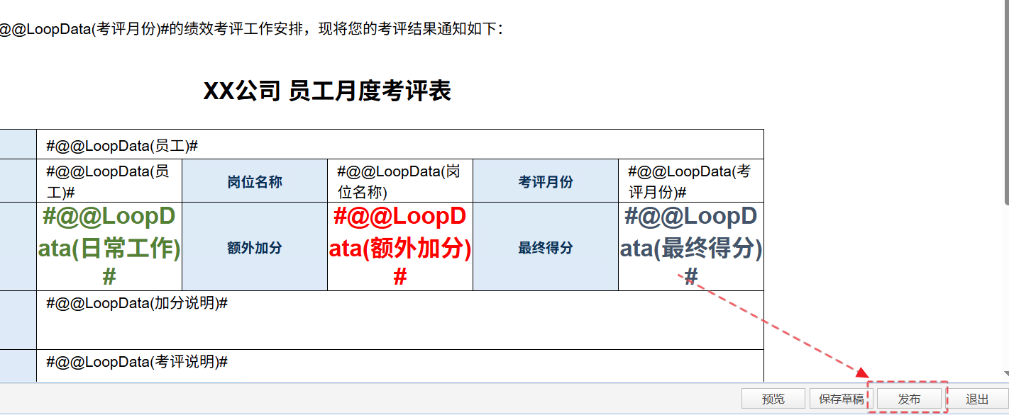 这里仍然以发送员工月度考评得分表为例。在"如何把Excel表格里的记录点对点发给员工"一文的基础上,增加以下功能: