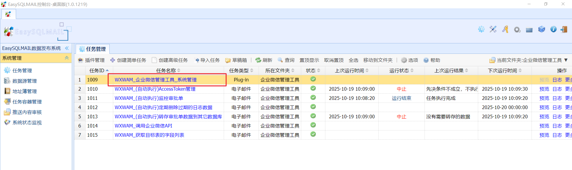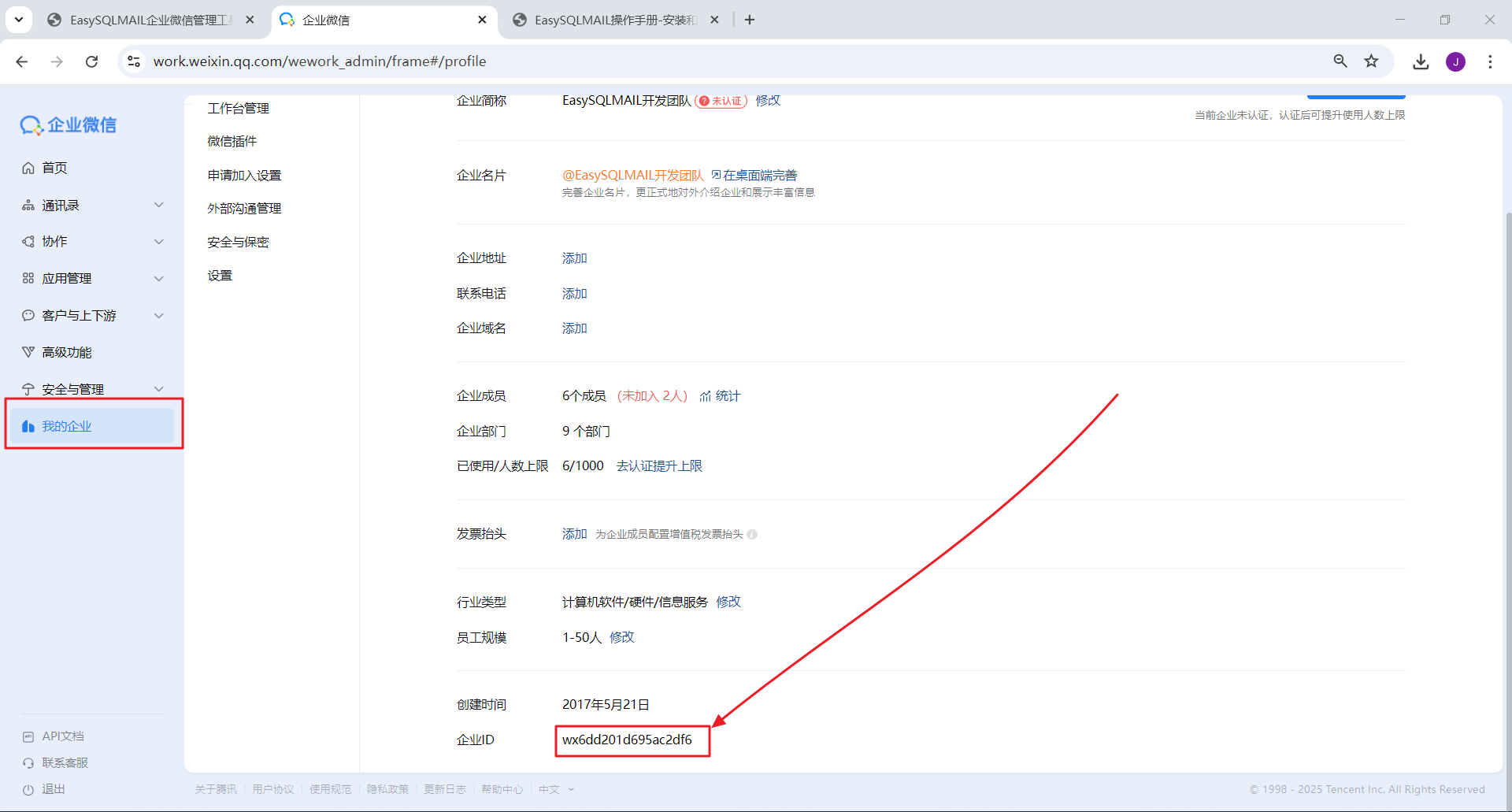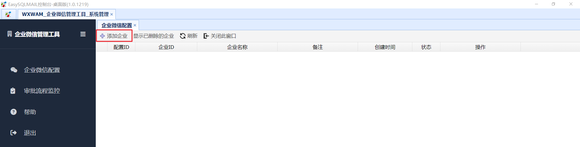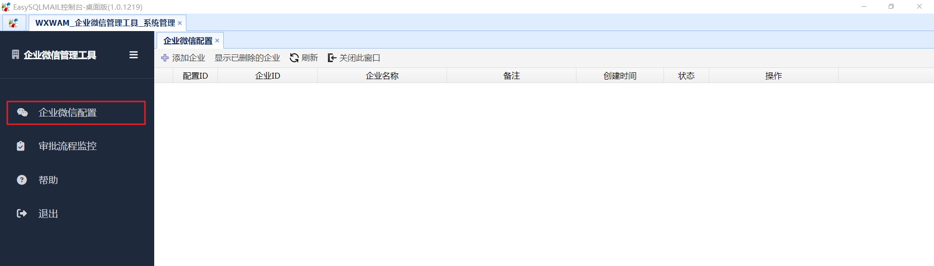 3.1 打开EasySQLMAIL企业微信管理工具的企业微信配置界面