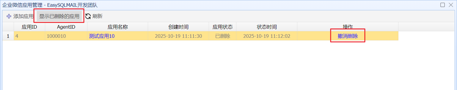 (2) 如果应用被删除后需要恢复使用,您可以在"企业微信应用管理"对话框中点击"显示已删除的应用",然后找到要恢复的应用,点击"撤消删除"即可。