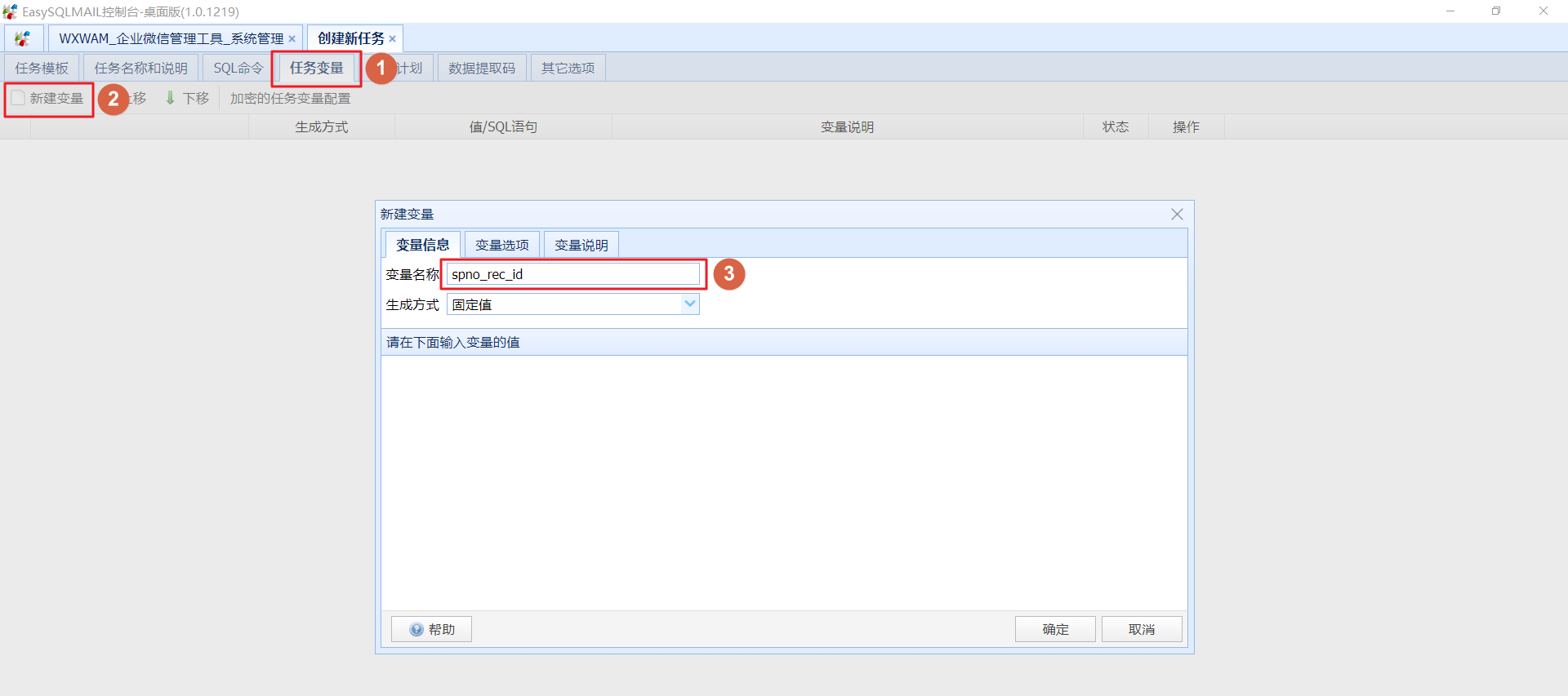 配置任务时注意要为任务添加一个名为 "spno_rec_id" 的变量,并且勾选变量的"允许从外部接口表中传入变量值"选项。